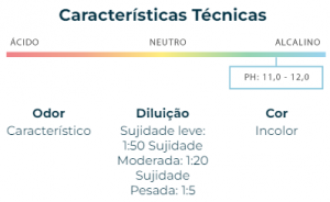 Após a diluição recomendada, aplicar com fibra, mop, pano ou gerador de espuma. Esfregar e finalizar com enxágue. Não misturar com produtos à base de amônia.